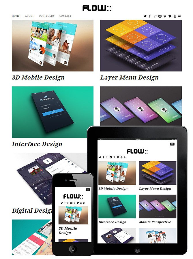 Flow Responsive WordPress Theme is great theme for any digital designer, with clean design and minimal layout. Flow theme has minimalist style and mobile friendly design.