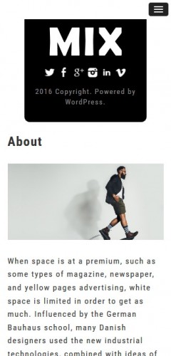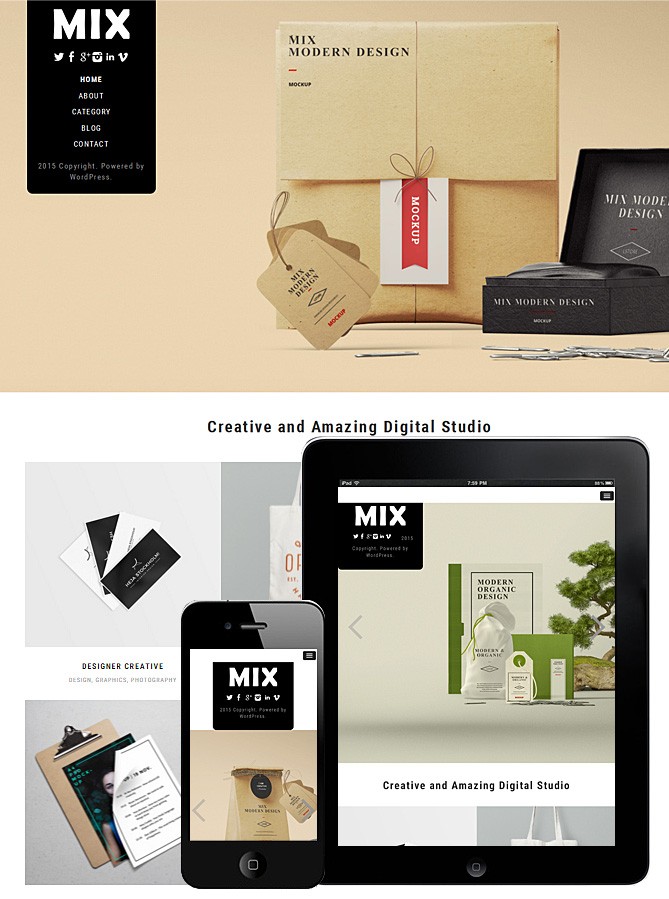Mix Responsive WordPress is great theme for any design agency and business site, with clean design, minimal layout, and scroll motion slider. Mix WordPress theme has minimalist style and mobile friendly design.