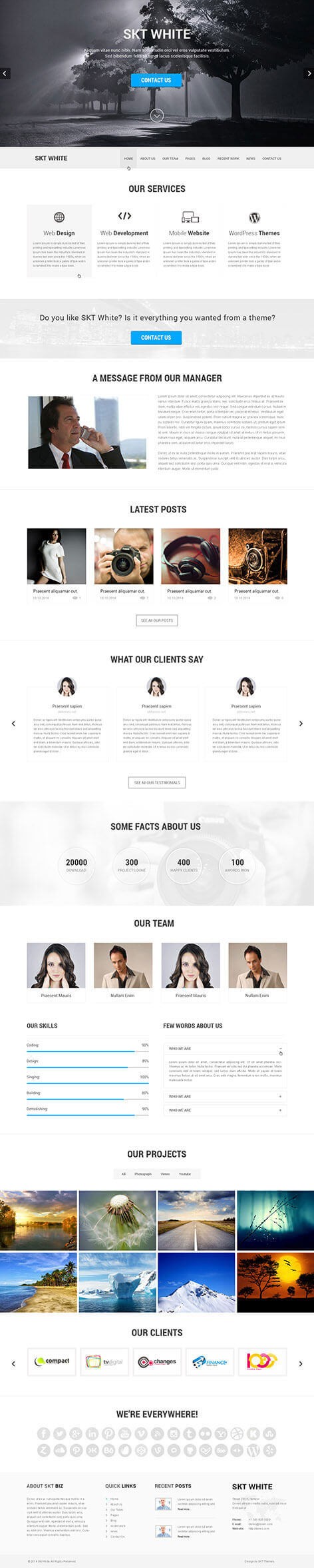 SKT White PRO is a responsive White WordPress theme with easy to use one page sections listed on the homepage.