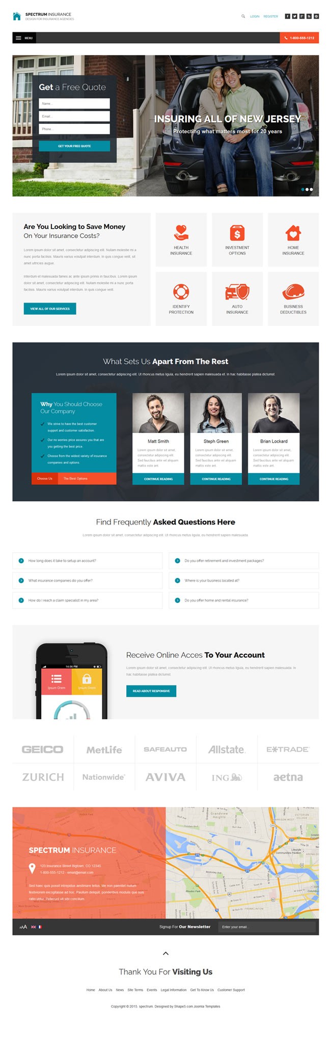 Spectrum is the theme your insurance company or other small business needs! This theme is built with insurance companies in mind, with easy to access items like: phone number, social links, quick quotes, insurance types, customer testimonials, companies represented, and much more! The simple styling of Spectrum allows it to match almost any kind of site genre as well.