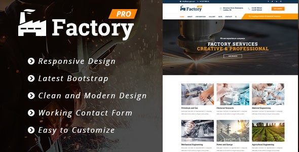 Factory pro is clean factory & business WordPress Template and retina ready. It is great, professional and easy to use template. You can use it for, business, construction, renovation, electricy, isolation etc.