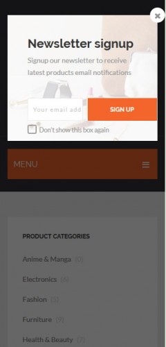 - Splash (popup) window for newsletter or anything else