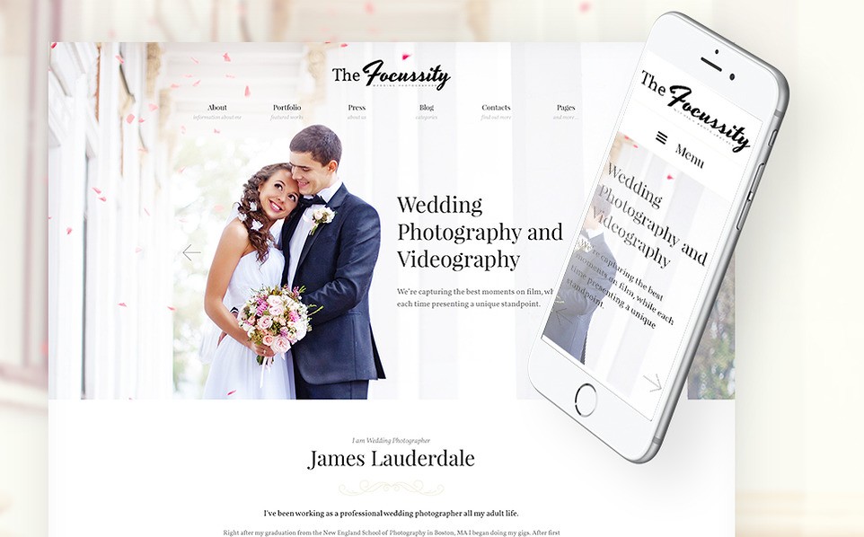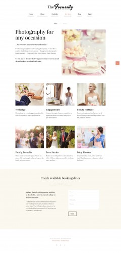 If you are looking for a wedding photographer WordPress theme that would become your magnet for clients? This template is a great option for you. It shows the best works of the photographer instantly, at one scroll, taking them afterward to a booking form placed on the same page. You may put the information about the photographer just in the middle of the design, making reading these several lines inevitable. Name the awards which the photographer got and use the elegant thing pointers of the image slider for clicking through the photographs. This responsive template will look well on any screen size possible.If you're looking for a professional template to build a website, view the Best WordPress Themes 2017.