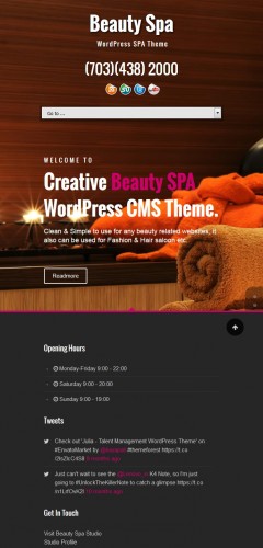 - Responsive: Beauty SPA is fully responsive Wordpress theme and works perfectly on all screen sizes and mobile devices, highly-responsive WordPress Theme built for today’s websites