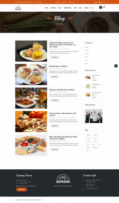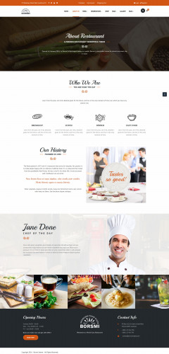 Borsmi is a modern, creative & responsive WordPress Restaurant theme with dedicated design for 3 pre-made demos. The endless possibilities WordPress theme can also be used to build Cafe Website, Recipe Website or any other Food Related Website. The Restaurant theme comes with ultimate core features, it supports multiple “Menu” pages, multiple “Reservations” and number of additional pages: Our chief, Event, Location, Gallery, etc.