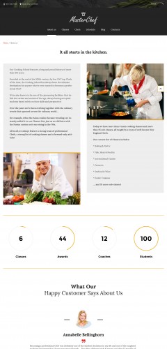 Master Chef is a stylish WordPress theme tailor-made for a cooking school. Since it is customizable and easy to use, you can adapt its design to any other education site. Simply go to a live customizer and modify anything from header and footer styles to typography and palette. For example, the theme features a dark color scheme, but you can edit it in line with your corporate style. To preview changes, no reloading is required. You can see them in a live mode.To create unique layouts, there is a drag-and-drop page builder dubbed Power. It comes with modules for literally any type of content, e.g. video, pricing tables, and calendar, to name a few. Built with Bootstrap 4, the theme features a flexible layout scalable to parameters of any viewport. It will let applicants browse your culinary courses both at home and on the go. Cherry Framework 5 empowers the theme from the inside. Being intuitive and rich in functionality, this open-source WP framework will make it a breeze to run your site.