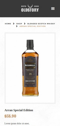 OldStory theme has an intuitive visual interface and informative layout that looks wonderful on any platform, since it’s fully responsive and Retina ready. The theme is compatible with a bundle of premium plugins: Revolution Slider, Essential Grid, Visual Composer and PO Composer that make your work both easier and more effective. We made the theme WooCommerce ready and supplied it with a respective shop design, so building a whisky shop or bar shouldn’t take you much time and efforts.