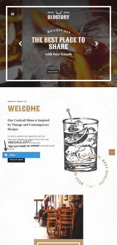 If you’re looking for Bar or Pub template, OldStory is what you actually need to make an impressive website. Created especially for Whisky Bar and Shop, OldStory has modern and functional design and lots of customizable features. The Theme can be also interesting for restaurant, cafe, cocktail bar, coffee shop, brewery, tavern, bartender career and more.