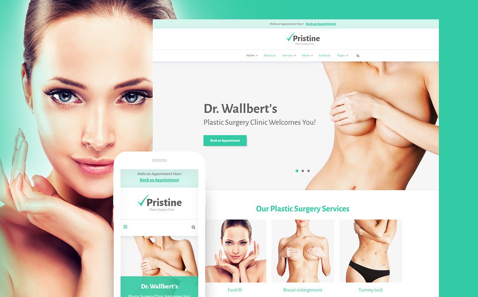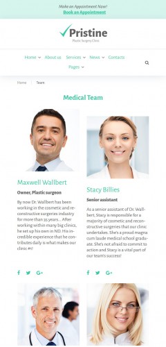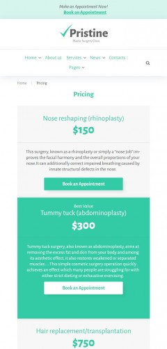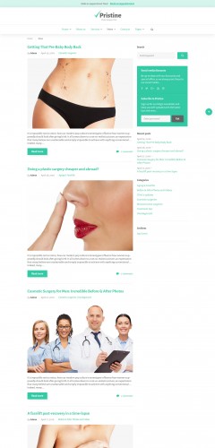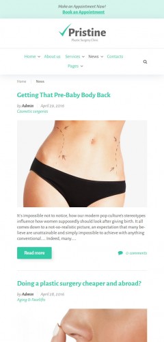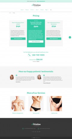 The theme was developed for plastic surgery clinics. It is made in green and white colors, which are traditional for medical sites. Big slider catches the user's eye and serves a great advertising. Clinics services are featured on banners. They make Plastic Surgery WordPress Theme navigation visual and intuitive. Welcome message from the company looks prepossessing. Reasons to choose namely this clinics and happy customers' testimonials raise visitors' trust. Social media icons are available at the footer of the web page. This template can be found in the selection of The Best WordPress Themes 2016.