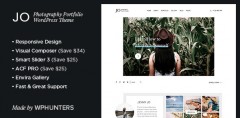 Jo is a Photography Portfolio WordPress Theme, handcrafted for creative folks who appreciate minimalism. It comes assembled with 3 designed Homepages, 4 types of Portfolio listing, 4 types of Gallery. In addition to common pages, we added page for Booking and Pricing Table. Jo does a great job in combining images and story telling.