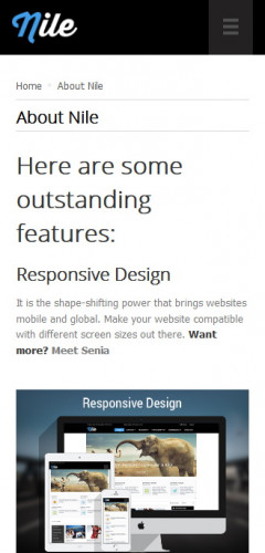 Responsive and clean design. Nile also gives you great flexibility in building layout with 3 pages and post templates, 7 custom widgets and 5 sample pages, huge library of typography, various slider styles and so on.