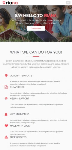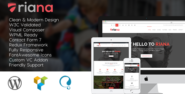 Riana is Non-Profit Charity WordPress Theme. Beautiful Charity Theme Comes With lot of Custom and Flexible features like Event System, Custom Gallery, Causes Features, Volunteers, etc. Riana has All necessary Pages. Riana can be used for NGO, Non-Profit Organization, Fund-Raising Event, Volunteer Organization or Any others Charity Website.