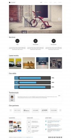 Zoomy has 5 custom widgets (Contact, Twitter, Flickr, Tabs, Banner) displayed in footer and sidebar. Also, it has 10 custom posts that include predefined elements like page slider, testimonials, services, gallery and portfolio items, calendar, team members and more. You can add custom posts from a dedicated area in your WordPress admin.