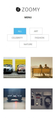 Unlike Shape, Zoomy has several representations of Home page, one of which is Full Width: where users can visualize photos in full screen and have a stylish slider. It has beautiful galleries that can be displayed in 2, 3, 4 columns and easily added using a dedicated custom post.