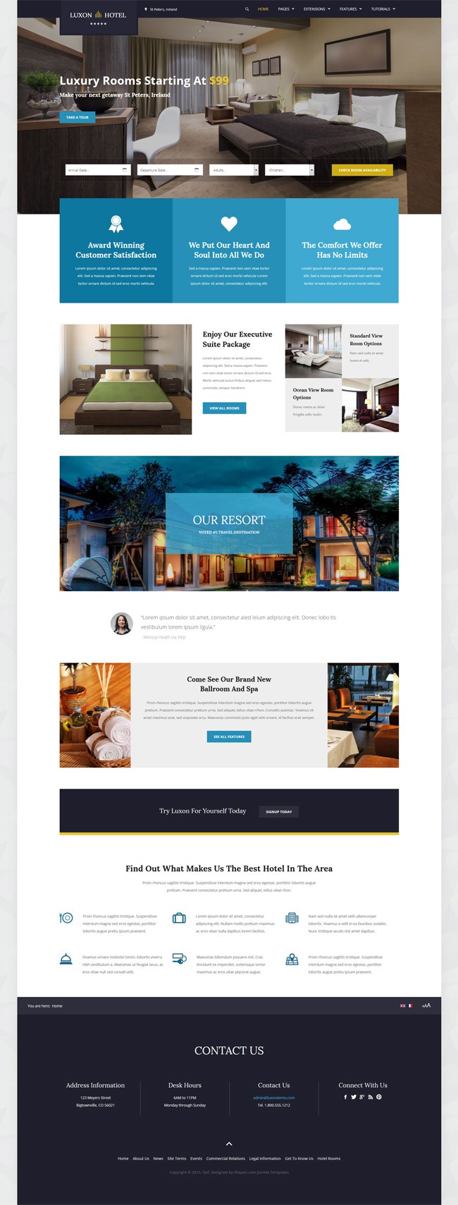 Do you need a theme for a hotel or resort? Luxon is the ultimate hotel and accommodations WordPress theme. Showcase off your resort or hotel in style and with great aesthetics. This theme was designed to showcase features by providing a large header image, a custom layout S5 Tab Show layout to provide easy access to many common amenities, quick access to reservation requests, and so much more!